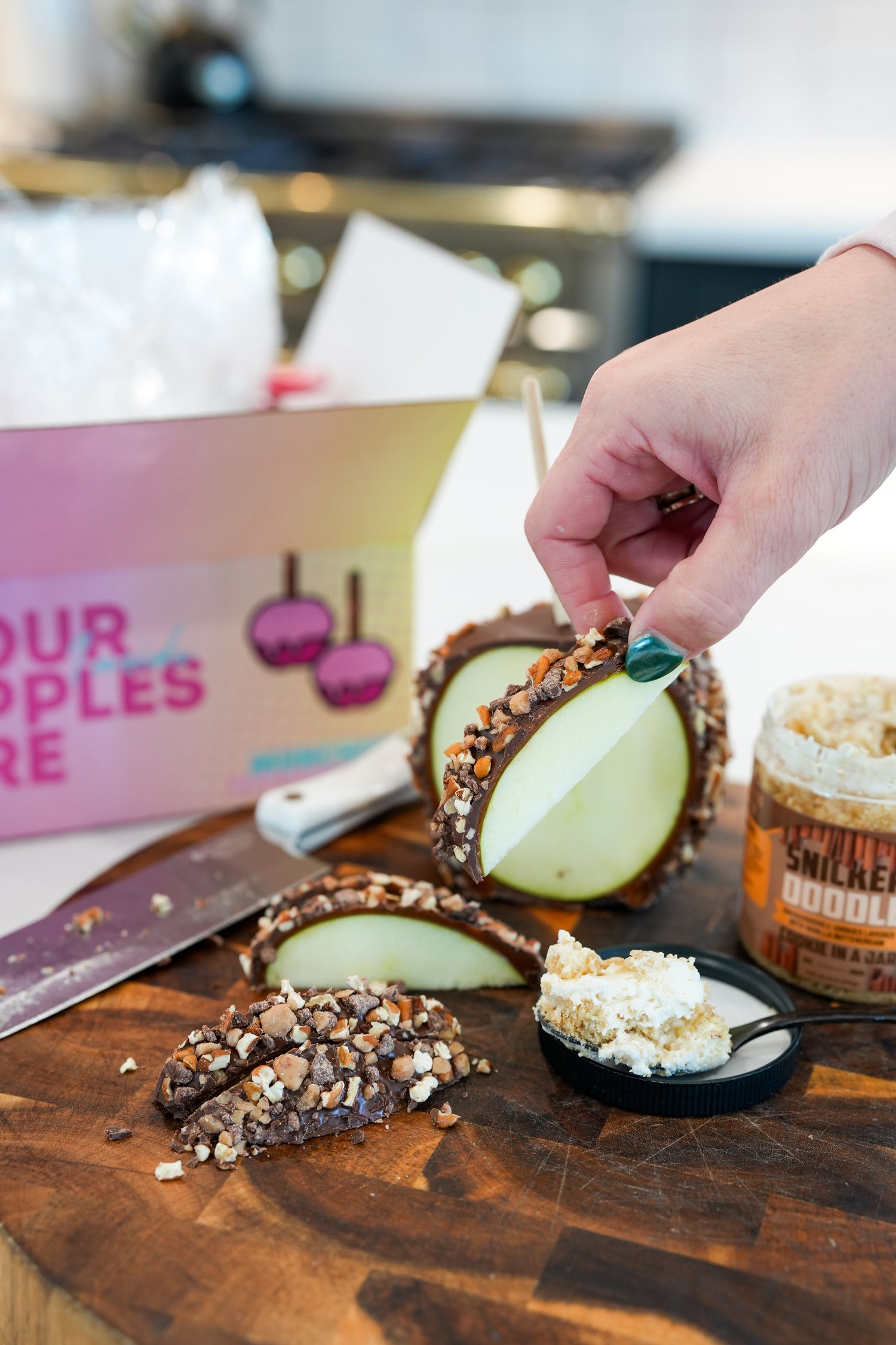 This very moment was pivotal for my small business. This was the exact reason Cookie Sandwiches in a jar came to life! At the time, I had no idea I would have so much success with this product and the opportunities that this creation would bring. After 1 year of business, I knew I wanted to expand my product to a larger audience. Moreover, I knew I needed to have more to offer to my clientele. I began to reflect on what I used to make growing up, and remembered how big of a hit caramel apples were in my family. I also saw that there was not a designated place to purchase this sweet treat, so I took a leap and started making MY version of caramel apples. To say the least, they are far from boring and the freshest candy you will ever eat.