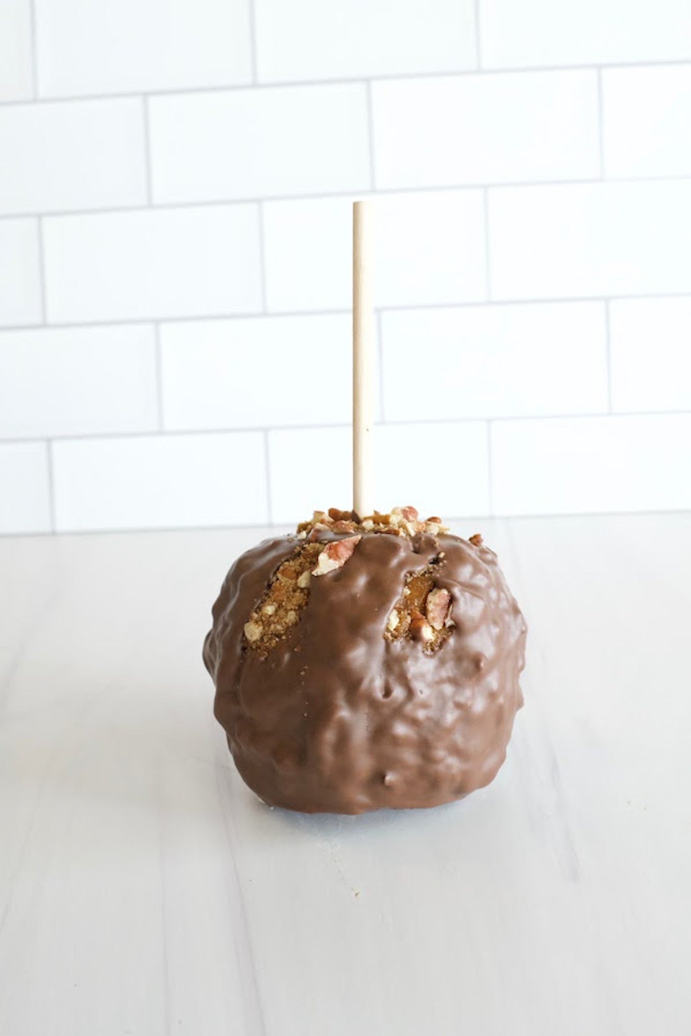 Our Brown Sugar Pecan Gourmet Apple is the top of them all! A tart Granny Smith Apple dipped in our original Caramel, rolled in crushed Pecans, Brown Sugar, & Cinnamon... oh yes and then topped with Milk Chocolate.