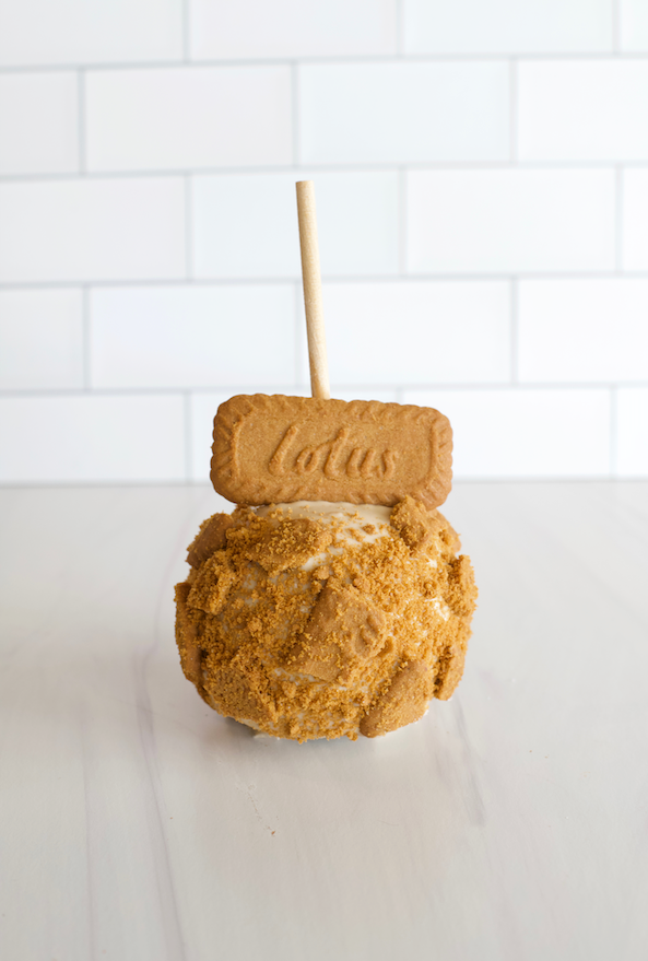 Our Cookie Butter Biscoff Caramel Apple is nothing short than what it sounds like. We get a tart Granny Smith Apple, dip it in our original Caramel and our Cookie Butter Chocolate. We then roll it in crushed Biscoff Cookies to top it off. Pure deliciousness!