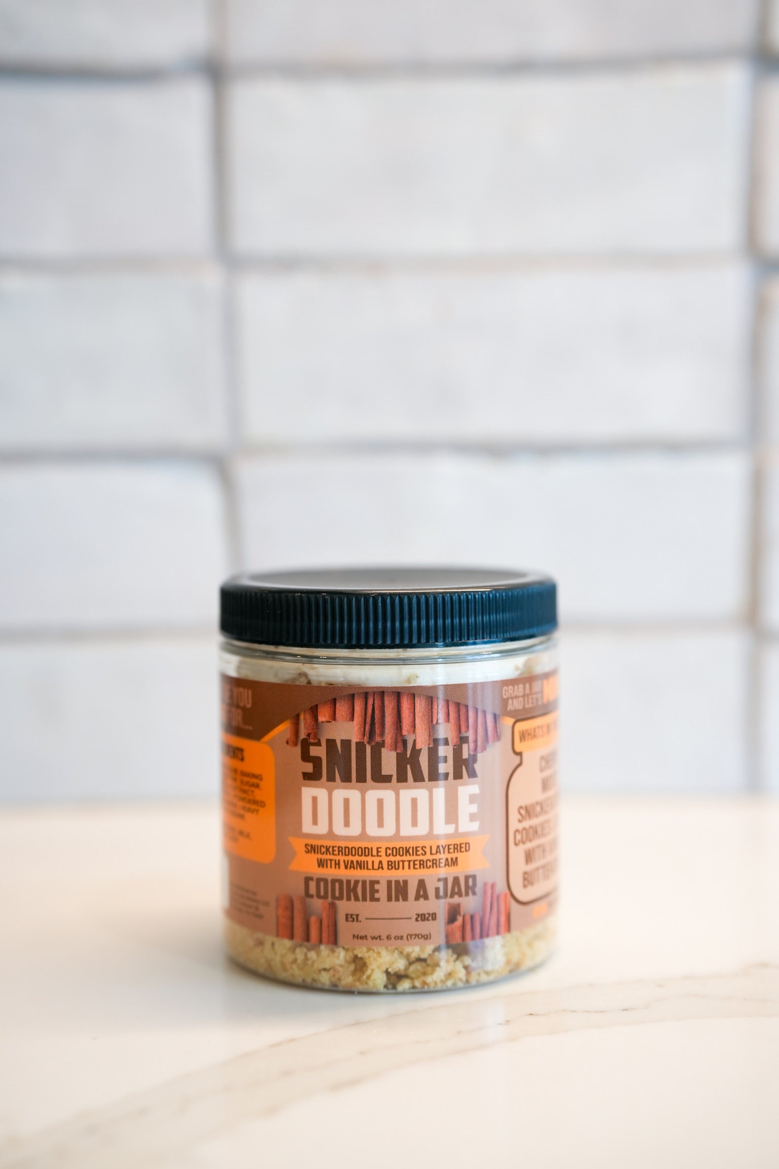 Our Snickerdoodle MUNCH-O In A Jar consist of Snickerdoodle Cookies layered with Vanilla Buttercream.
